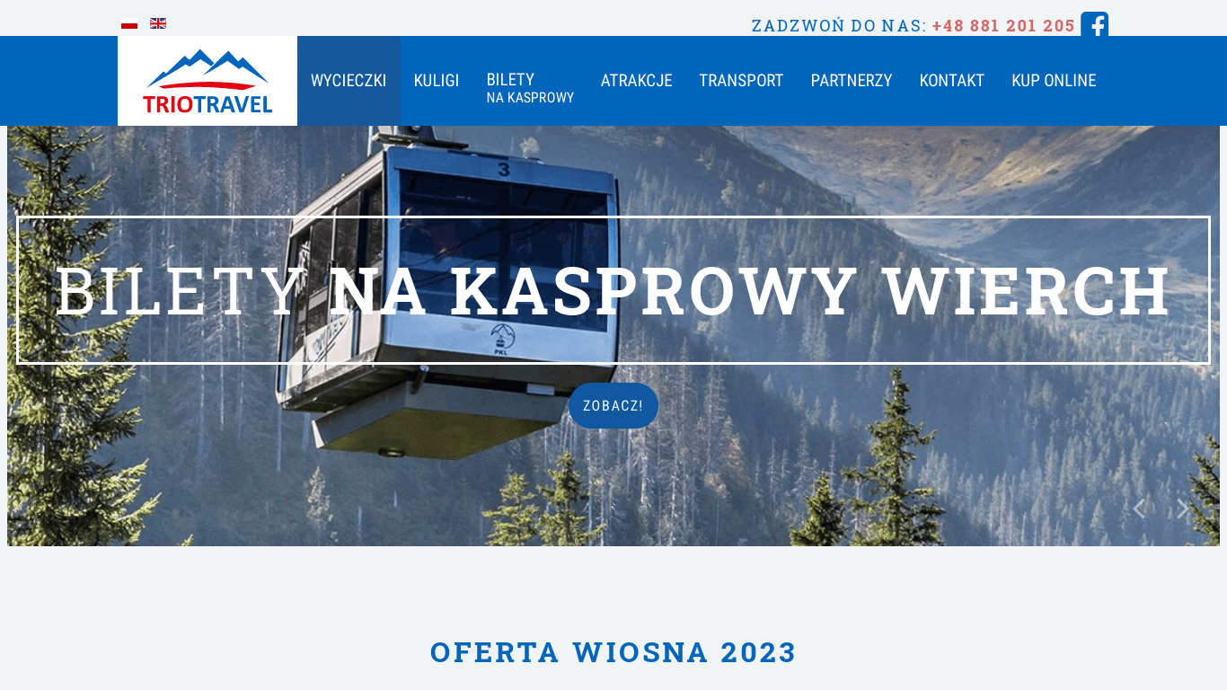 T. Kościuszki 23A | 34-500 Zakopane | woj.: małopolskie | NIP: 736-171-74-73 | REGON: 122951821 | telefon: +48 881 201 205 | triotravel.pl | biuro@triotravel.eu